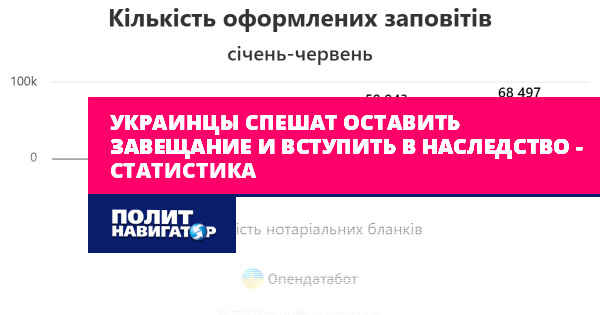 По официальным данным за первое полугодие 2024 года на Украине было оформлено 521 356 бланков на свидетельство о праве на наследство. За такой же период прошлого года украинцы использовали только 455 тысяч бланков. Также нынешний показатель на 9,7% больше, чем до начала войны.