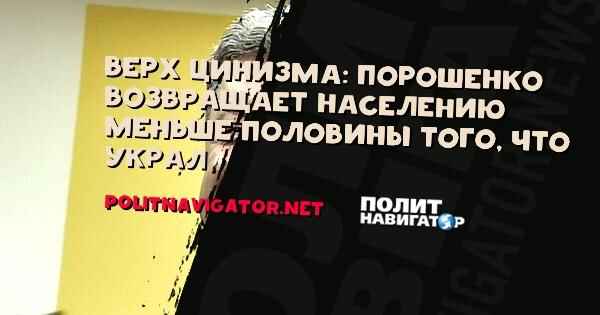 Верх цинизма: Порошенко возвращает населению меньше половины того, что украл